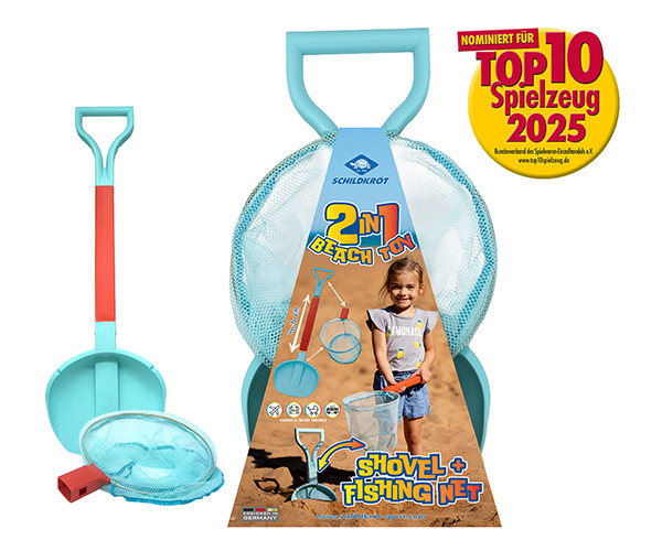 Wir freuen uns sehr, Ihnen mitteilen zu dürfen: Unser 2in1 Beachtoy Set wurde für die renommierte Auszeichnung "Top 10 Spielzeug 2025" nominiert! Das 2in1-Strandspielzeug vereint Schaufel und Kescher in einem cleveren, ausziehbaren Design (40–70 cm). Es ist kompakt zusammenklappbar, leicht zu transportieren und besonders robust – ideal für kreativen Spielspaß am Strand, vom Buddeln bis zum Entdecken von Meeresbewohnern. Jedes Jahr zeichnet der Bundesverband des Spielwaren-Einzelhandels (BVS) gemeinsam mit einer hochkarätigen Fachjury aus Handel und Industrie die beliebtesten und vielversprechendsten Spielzeuge aus. Nach bereits neun Nominierungen in den vergangenen Jahren ist dies ein weiterer Beleg für die Innovationskraft und Marktattraktivität der Marke Schildkröt.
